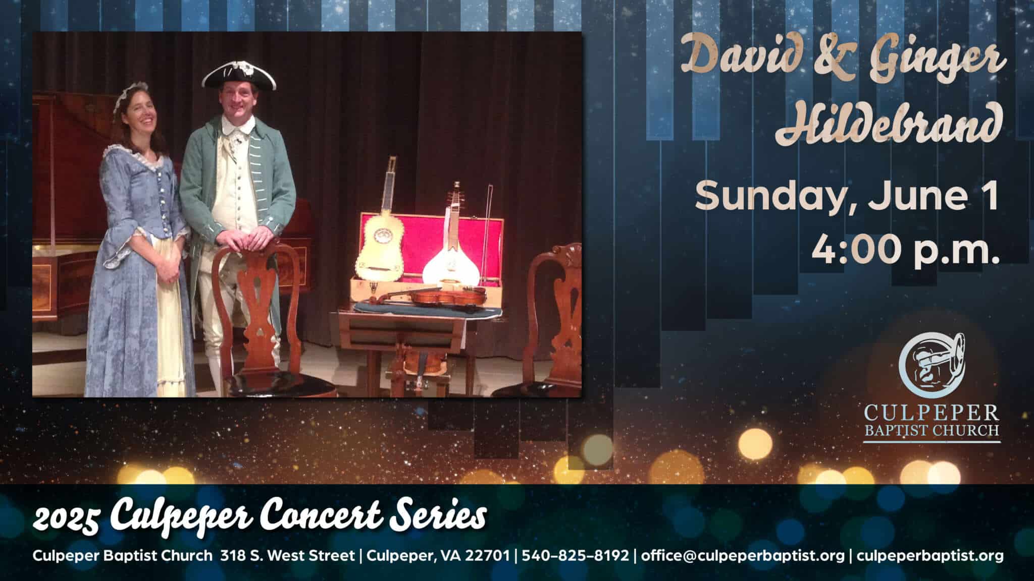 Come celebrate the 200th anniversary of General Lafayette’s grand US tour (including a visit to Culpeper!) with renowned music historians David & Ginger Hildebrand for a concert of special period music.