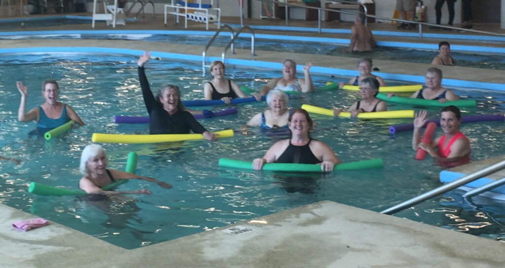 The aquatic arena includes a warm-water pool, two warm-water pockets for therapy, a two-lane walking oval with chest-high water and a current, and lap lanes for swimming or aqua classes. Day passes are available for visitors to enjoy without the commitment of an annual membership.