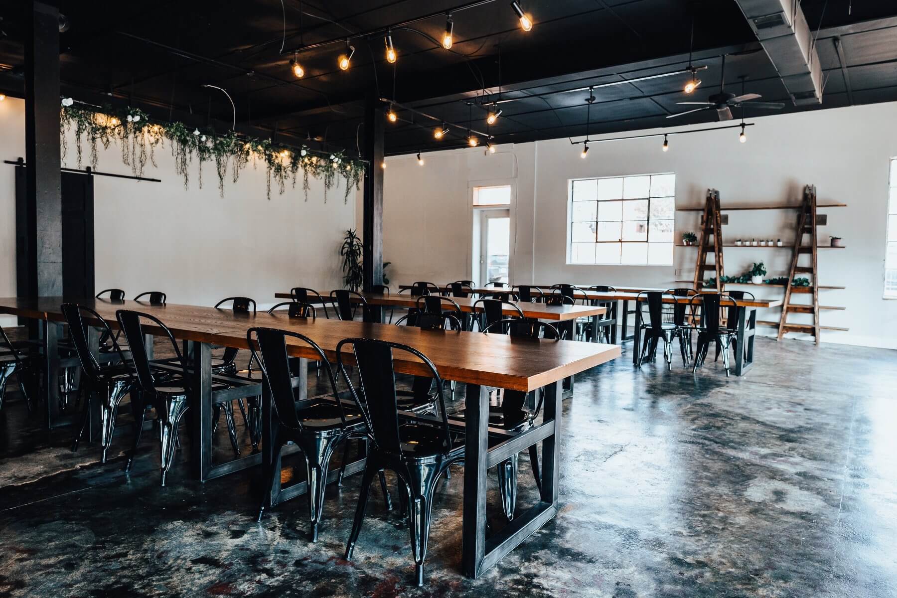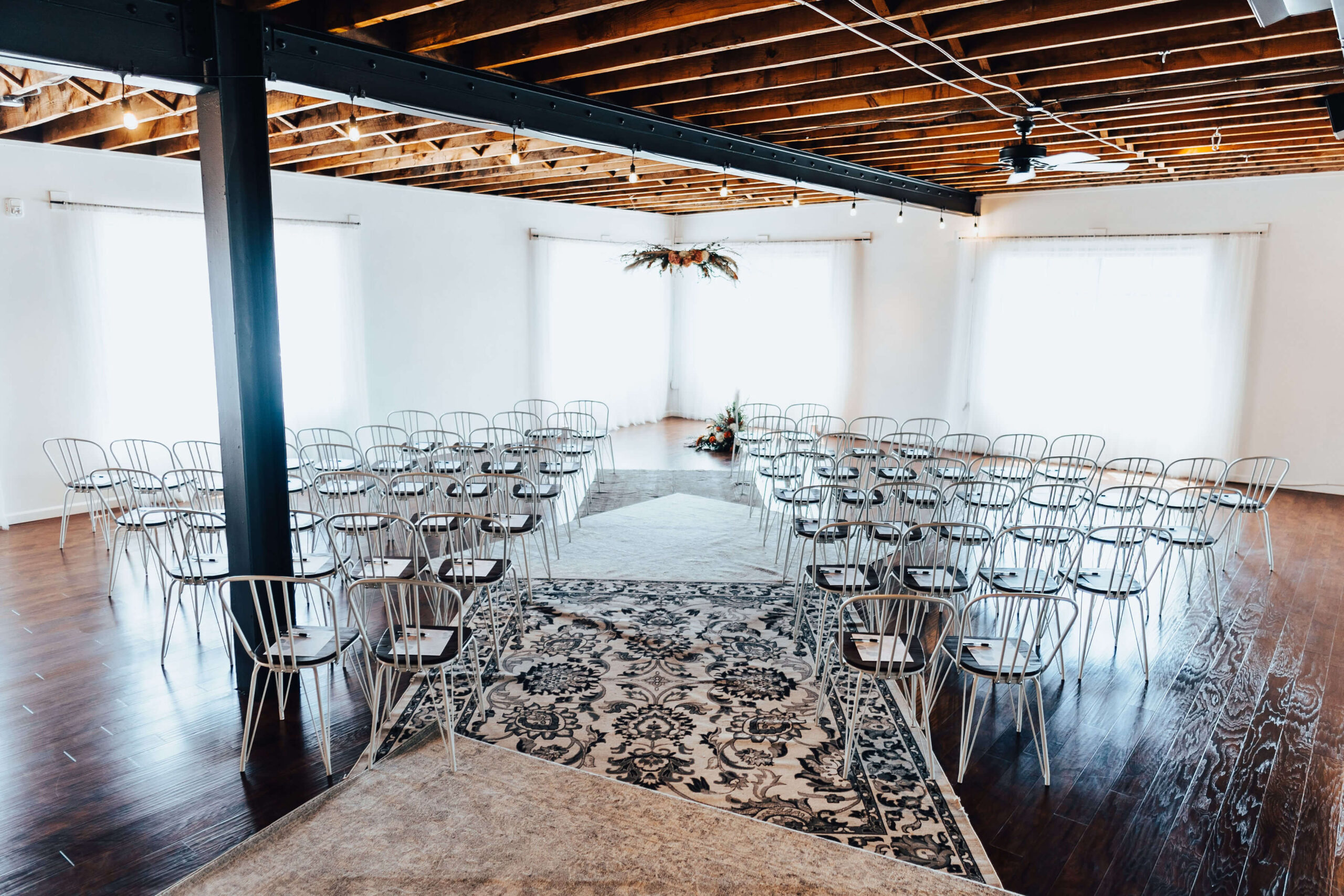 Boasting an upstairs ceremony + cocktail hour location and a downstairs reception space for up to130 seated guests, our space allows for all of your closest loved ones in one place, while still keeping with the theme of the intimate downtown experience.